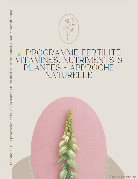 Voici un programme d’accompagnement fertilité basé sur les éléments essentiels à la fertilité, combinant vitamines, nutriments, plantes et hygiène de vie. Il a été conçu pour optimiser les chances de conception en agissant à la fois sur la qualité des ovules et des spermatozoïdes, l’équilibre hormonal et le bien-être général. Ce programme propose une approche globale et naturelle, en respectant les différentes phases du cycle féminin et en soutenant la fertilité masculine, tout en incluant des pratiques de gestion du stress et d’activité physique douce.. sans posologie médicale et sans remplacer un avis de votre médecin ou gynécologue obstétricien.